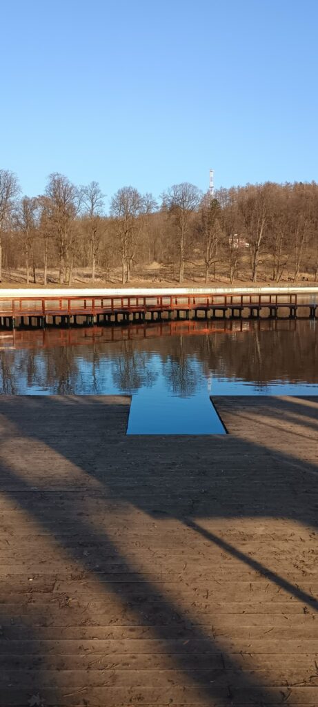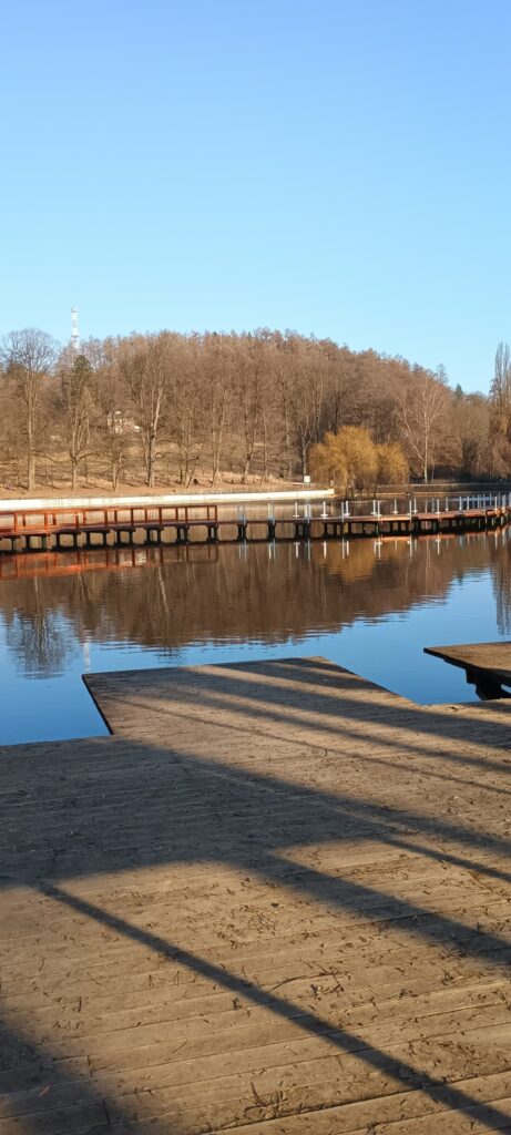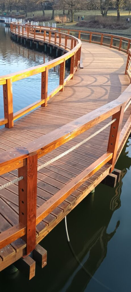 Warto posłuchać co ludzie mówią. Jedna pani mi opowiadała, że chodzi tamtędy każdego ranka i każdego ranka widzi coś nowego. Stoją już pierwsze elementy konstrukcji, pojawiają się ławki przy wodzie. I to jest właśnie sedno że wreszcie będzie gdzie usiąść i spokojnie popatrzeć. Trochę mnie to wzrusza, nie powiem.